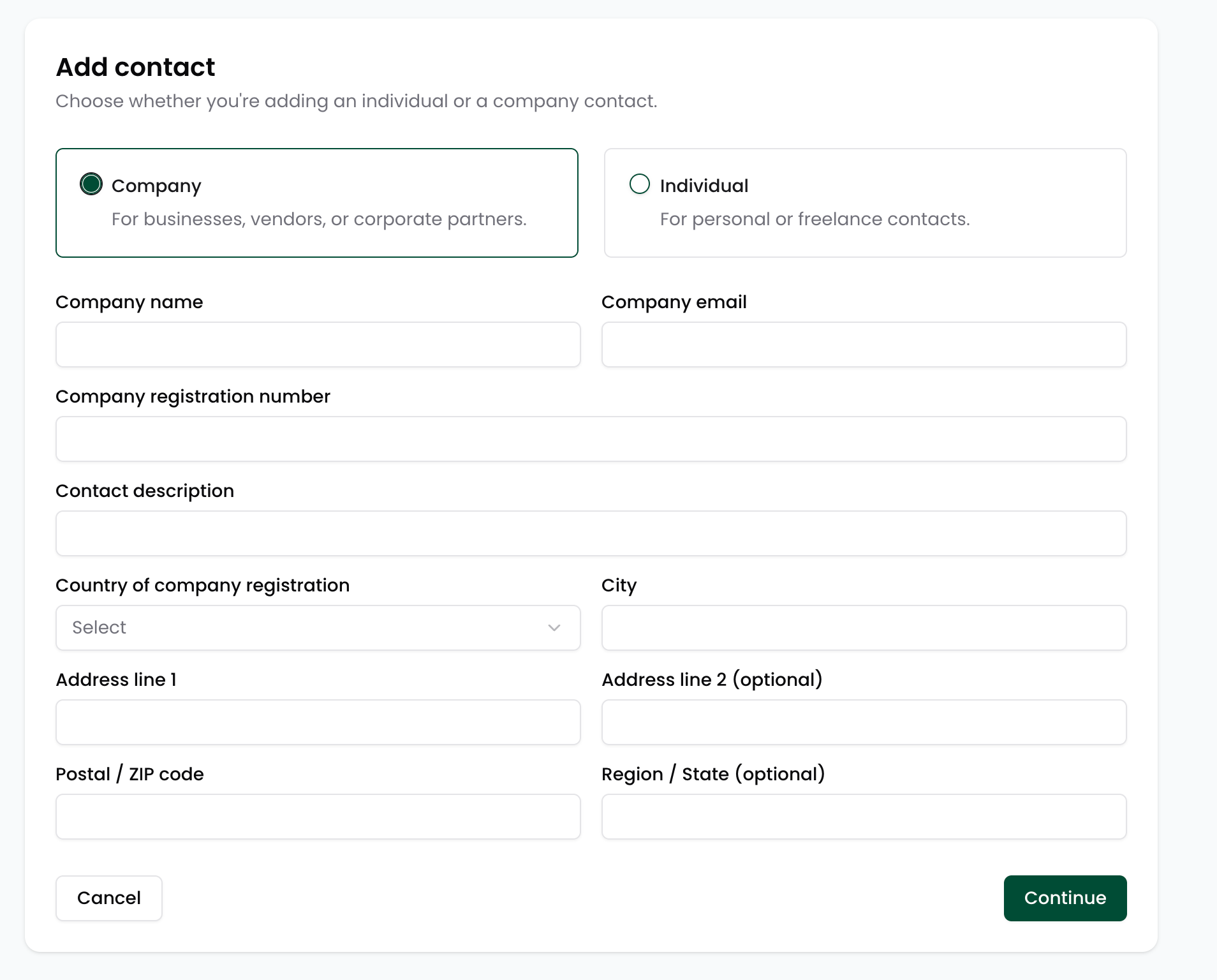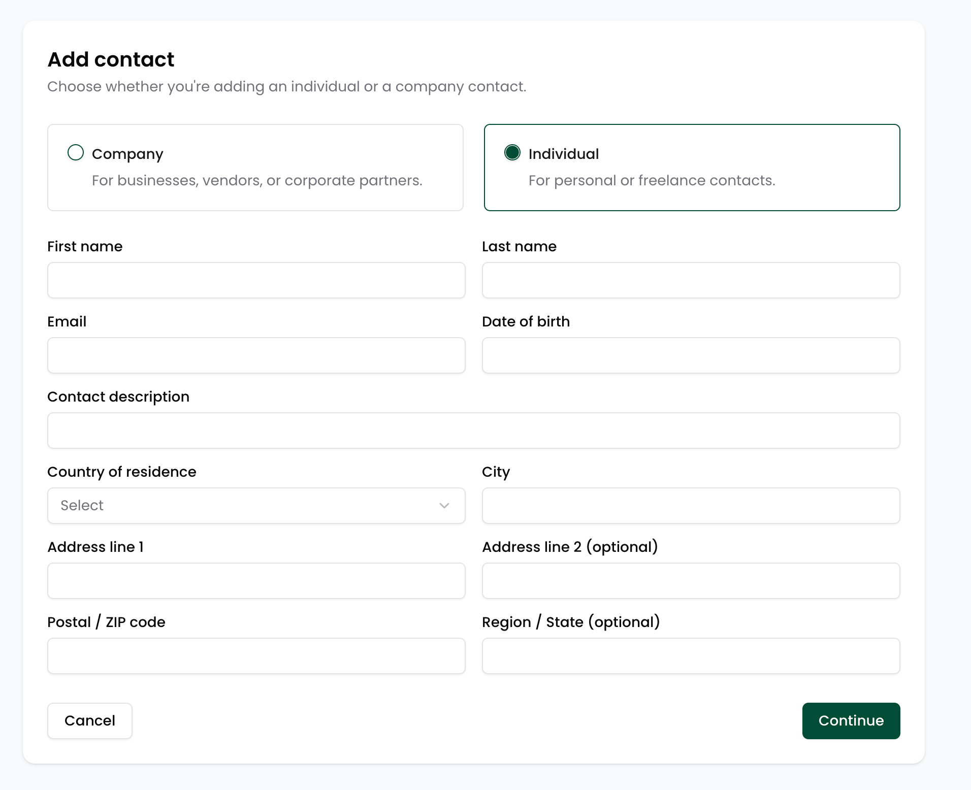 Manage verified individuals and businesses you send funds to or request payments from - all with built-in compliance and AML checks.