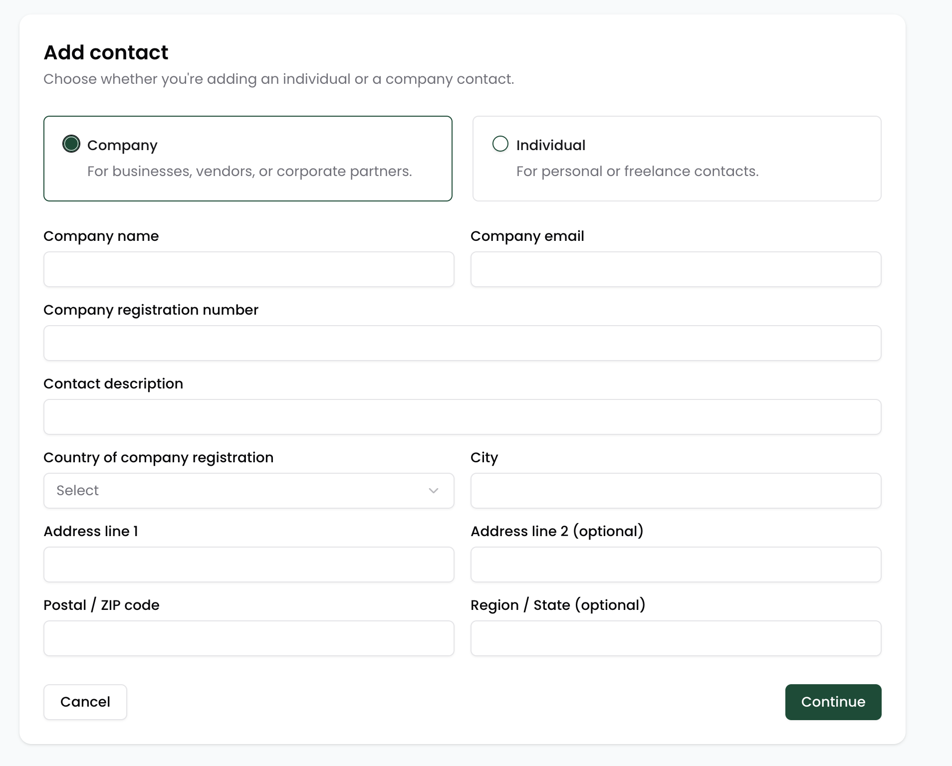 During the creation process, you will be asked to provide key information related to type of contact you wish to add.