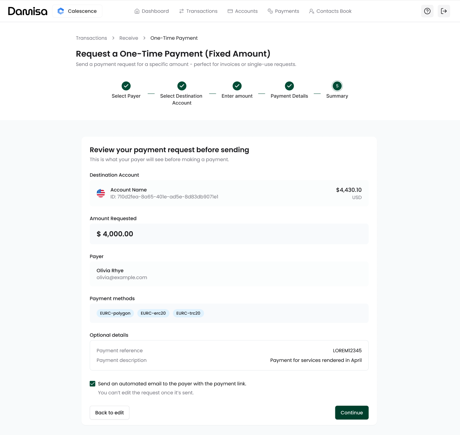 This ensures the Payment Request you create is tied to a single payer, enabling Damisa to automatically track, match, and reconcile incoming payments and meet all the regulations.